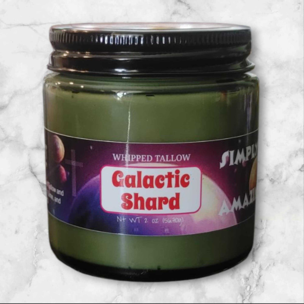 Experience the luxurios Galactic Shard Whipped Tallow, crafted with premium grass-fed tallow and enriched with organic avocado and jojoba oils. This delightful skin treatment features an invigorating blend of organic essential oils--grapefruit, lime, and basil--creating a refreshing sensory experience while nourishing your skin with nature's finest ingredients. Transform your skincare routine with this exceptional whipped tallow that delivers deep moisture and natural radiance.